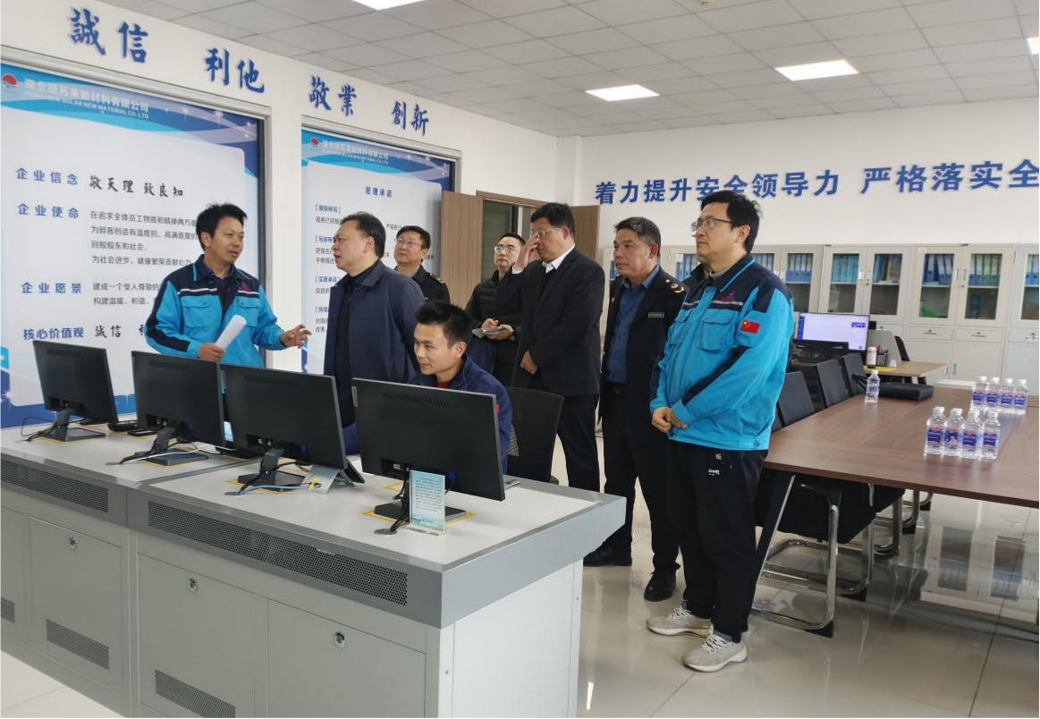 檢查組一行首先實地查看了公司“五位一體智慧管理平臺”的運行情況,重點了解生產(chǎn)裝置、重大危險源區(qū)域等關(guān)鍵環(huán)節(jié)的實時監(jiān)控與安全管理措施。隨后,劉局長詳細詢問了安全制度執(zhí)行、風(fēng)險管控機制及員工培訓(xùn)等具體工作,并認真查閱了相關(guān)臺賬、記錄和制度文件。
